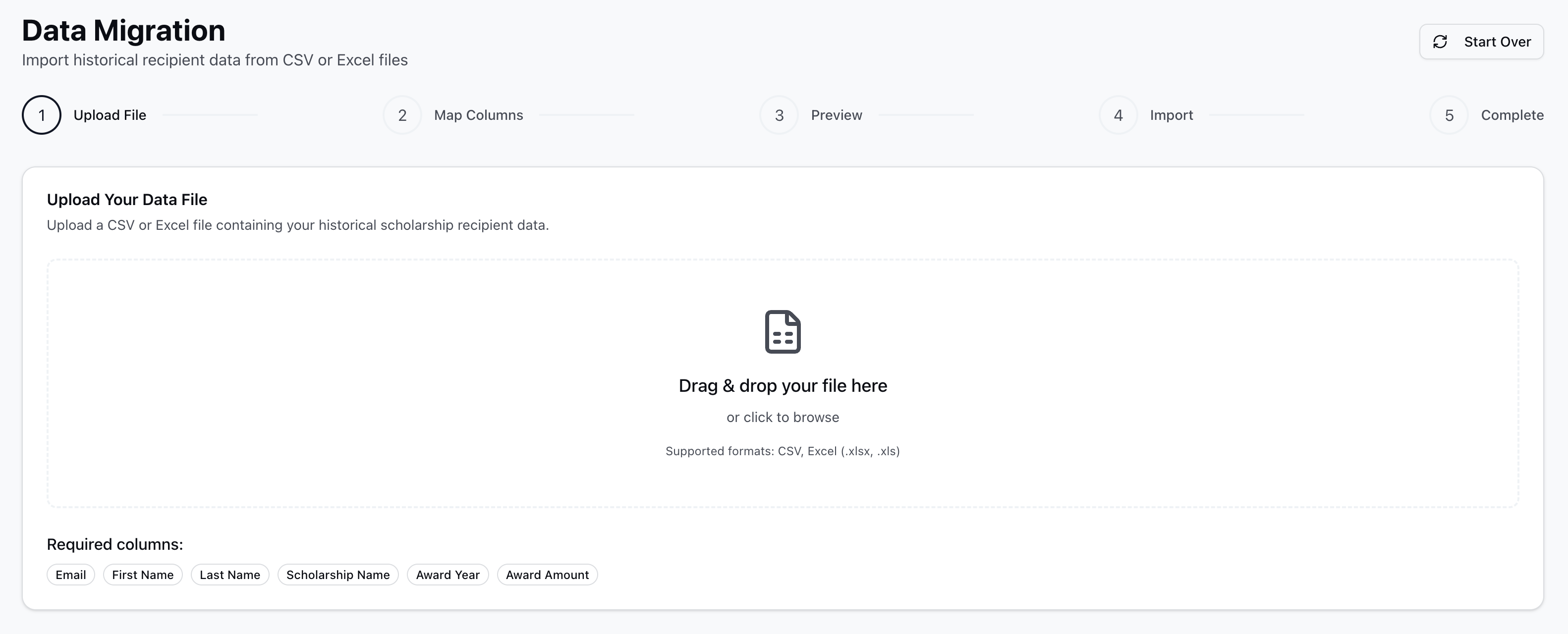 Create custom scholarship applications with our intuitive drag-and-drop form builder. No coding required—just drag fields, set requirements, and publish.